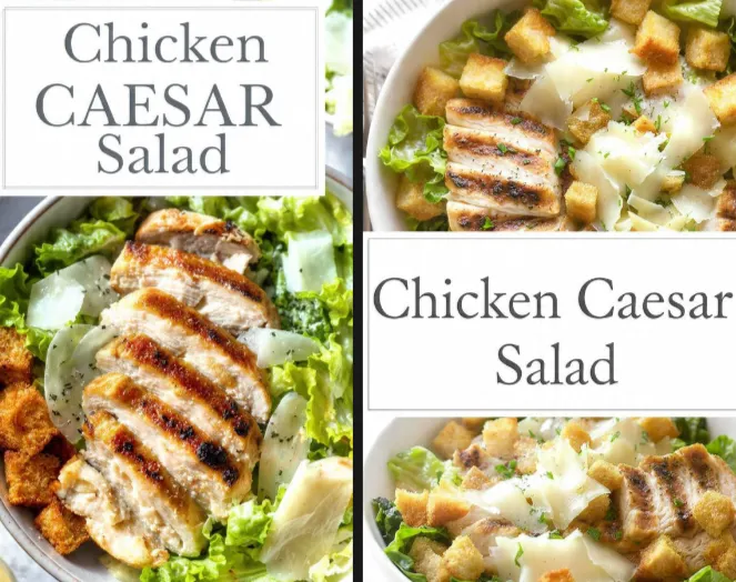 The perfect Chicken Caesar Salad has a balance of textures — crisp lettuce, tender chicken, crunchy croutons, and creamy dressing. The flavor is rich and tangy, with the umami of Parmesan and anchovies complementing the freshness of lemon and greens. Each bite is satisfying, refreshing, and full of contrast.