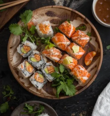 - Party Sushi Platter: Mix different rolls and serve with wasabi, pickled ginger, and sauces.